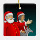 Santa Claus, Mrs. Santa und Rudolph auf einer Keramik Weihnachtsdekoration.