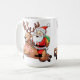 Ein glücklicher Weihnachtsmann reitet mit seinen Rentieren zu einem fröhlichen Weihnachten und einem serenischen Urlaub. Ein niedlicher, fröhlicher Weihnachtsmann für alle