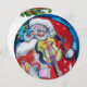Farbenfrohe, skurrile und künstlerische Acrylmalerei ,Der Weihnachtsmann spielt in der schneebedeckten Winternacht Geige, eine Eule, Blumenschmuck, Winterfrüchte, heilige Beeren in kräftigen Rot-, Grün-, Weiß-, Blau- und Gelbtönen.
