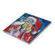 Farbenfrohe, skurrile und künstlerische Acrylmalerei ,Der Weihnachtsmann spielt in der schneebedeckten Winternacht Geige, eine Eule, Blumenschmuck, Winterfrüchte, heilige Beeren in kräftigen Rot-, Grün-, Weiß-, Blau- und Gelbtönen.