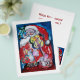 Farbenfrohe, skurrile und künstlerische Acrylmalerei ,Der Weihnachtsmann spielt in der schneebedeckten Winternacht Geige, eine Eule, Blumenschmuck, Winterfrüchte, heilige Beeren in kräftigen Rot-, Grün-, Weiß-, Blau- und Gelbtönen.