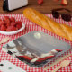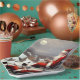 Diese lustigen Teller auf der Ferienwohnung bieten Santa eine Pause. Text könnte in den Himmel eingefügt werden.