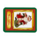 Niedlicher Weihnachtsmann in rotem und goldenem Rahmen auf grünem Hintergrund. Sie können Text und Hintergrundfarbe auch individuell anpassen.