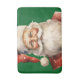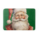 A bath mat with a cute retro style illustration. Santa Claus with a bushy white beard wearing his traditional red suit.