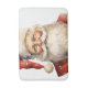 A bath mat with a cute retro style illustration. Santa Claus with a bushy white beard wearing his traditional red suit.