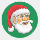 Der Kopf des Weihnachtsmannes auf einem runden Aufkleber mit grünem Hintergrund.