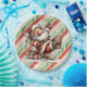 Funny Santa Claus slipping in the snow, on a Christmas-y background.