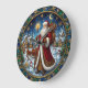 Santa Claus Stained Glass Holiday Scene Große Wanduhr