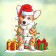 Santa Claus Welsh Corgi wrammelte in Weihnachtslic Fensteraufkleber