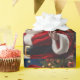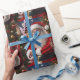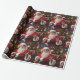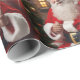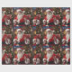 Wrapping-Papier mit einem nach oben nahen Bild des Weihnachtsmanns, der lächelt und winkt, während er vor einem Weihnachtsbaum sitzt. Dieses Design wurde von Debbie Quick aus Debs Creative Images erstellt: www.debscreativeimages.com