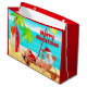 Diese fröhliche Weihnachtsgeschenk-Tasche bietet Santa Clause am Strand. Er entspannt sich mit seinen Surfbrettern, genießt die Sonne, Palmen und seine Pfeife.