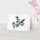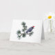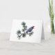 A crow wearing a Santa hat in pine branches on this distinctive holiday card.