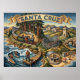 Santa Cruz California Illustrated Map UCSC Wharf Poster
