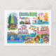 Santa Cruz Illustrated Map Boardwalk Beach Surfing Postkarte