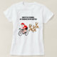 This festive Christmas tee-shirt showcases Santa Claus speeding down a snowy hill on a candy cane striped bike, with his cheerful reindeer racing close behind. It’s the perfect holiday design for cyclists, bike riders, and anyone who loves a fun and active Christmas season.