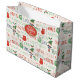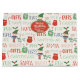 Diese niedliche Weihnachtsgeschenktasche bietet ein lustiges elfenförmiges Thema, mit Bildern eines Elfen, des Spielzeugsacks des Weihnachtsmanns, der Heiligen und einem Geschenkpaket. Die vorherrschenden Farben sind Grün, Marineblau, Rot und Weiß. Auf der Tasche steht "Elfen", "Santa", "Candy", "Naughty", "Nice", "Geschenke", etc. Ein rotes Oval an der Vorderseite sagt "Frohe Weihnachten" im Skript, mit Ihrer eigenen Unterschrift gerade unten. Beide Seiten haben das gleiche Hintergrundmuster.