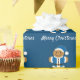 Papier mit einem lächelnden Lebkuchen Santa, in einem blauen Anzug, und die Worte "Frohe Weihnachten". Die Wörter können nach Belieben angepasst werden. Frohe Weihnachten!