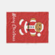 Fleece Blanket mit einem lächelnden Lebkuchen Weihnachtsmann und den Worten "Frohe Weihnachten". Die Wörter können nach Belieben angepasst werden. Frohe Weihnachten!