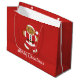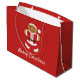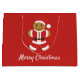 Große Geschenktasche mit einem lächelnden Lebkuchen Santa Design und die Worte "Frohe Weihnachten". Die Wörter können nach Belieben angepasst werden. Frohe Weihnachten! Santa Gingerbrei Man Holiday Weihnachten Große Geschenktasche Sweetsham Food Art | ©Melissa Patton - Künstler/Illustrator