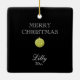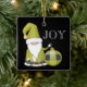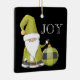 Niedlicher Santa Gnome in Grün mit grünen Ornamenten und JOY-Typ auf der Vorderseite und Name und Jahr auf der Rückseite, Keramik-Ornament.