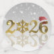 This elegant illustration features the year 2026 in shiny golden typography. The zero is replaced by a detailed gold snowflake, while the final number is decorated with a red Santa hat. The design has a luxurious and festive appearance, making it ideal for Christmas and New Year.