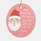 Dieses Santa-Message-Ornament besticht durch ein niedliches Santa Claus-Design. Personalisieren Sie es mit Namen, Jahr und Foto auf der Rückseite.