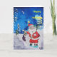 Santa geht an einem frostigen, schneereichen Abend durch den Wald.