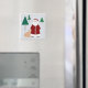 Magnet mit der digitalen Illustration des Weihnachtsmannes im Wald, mit seiner Tüte von Geschenken.