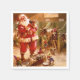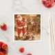 Charmante Vintage Papierservietten mit dem Weihnachtsmann und seinen Elfen in der Rentierhütte, die kleine Kätzchen füttre.