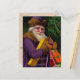 Diese Karte ist eine von einer Serie, die die fröhlichen Mitmenschen zeigt, die Geschenke und Weihnachtsjubeln liefern. Sein stilistischer Hut und sein Gewand sind mit Fell und Flecht dekoriert. Das originelle Bild zeigt reiche und elegante Farben und ist ein perfektes Design für die Urlaubskorrespondenz und dekorative Gegenstände. Im behalt zum antiken Stil weist die Rückseite der Postkarte auch ein Design aus dem 19. Jahrhundert auf.