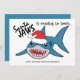 Die Weihnachtskarte zum Thema Küste bietet einen niedlichen Hai in einer Weihnachtsmannmütze mit der Aufschrift "Santa JAWS kommt in die Stadt". Name und Gruß können personalisiert sein. Original Kunstwerk Tommy Moreno und KL Stock.