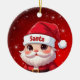Santa! Celebrate the holiday season with this festive round ceramic red ornament featuring an endearing cartoon graphic of a cute baby wearing a Santa hat. Perfect for decorating your tree or as a thoughtful gift, this whimsical decor makes a cherished keepsake for years to come. Customize by changing the text, the font, the font color, or remove the text. You can even transfer this design onto other products. Enjoy this design your way! 🎅🎄