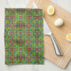 Lebhafte geometrische Muster wiederholen sich durch das gesamte Design und zeichnen sich durch komplexe, kaleidoskopartige Motive aus, die sich durch eine Mischung aus Grün, Blau und Rosa auszeichnen. Die symmetrische Anordnung erzeugt einen visuell stimulierenden und farbenfrohen Tapestry-Effekt.