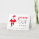 Funny Weihnachten Urlaub gefaltet Grußkarte feiern das bevorstehende Ende für ein hartes 2020. Ein Weihnachtsmann im coolen Retro-Stil trägt eine Gesichtsmaske, die neben "Peace Out 2020" in lustiger rot-schwarzer Typografie stehend ist. Der Gruß wünscht ein "frohes Weihnachtsfest & Happy New Year" mit "new" in rot, um ein willkommenes neues Jahr bis Ende 2020 zu betonen.