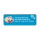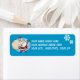 Rücksendeadressen-Aufkleber mit einem Weihnachtsmann mit seiner Tüte Spielzeug auf blauem Hintergrund mit Schneeflocken und weißem Text, der leicht zu gestalten ist.