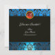 SANTA MIT VIOLIN, BLUE BLACK DAMASK MONOGRAMM Ruby Einladung