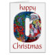 O fett Anfangsbuchstabe Weihnachts-Monogramm-Design .Farbige, whimsikale und künstlerische Acrylmalerei ,Der Weihnachtsmann spielt in der schneebedeckten Winternacht Geige, eine Eule, Blumenschmuck, rote Bänder, Bogen, Pflanze, Winterfrüchte, heilige Beeren in leuchtend roten, grünen, weißen, blauen, gelben Farben. von Bulgan Lumini (c) com