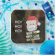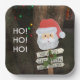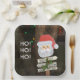 Feierlicher Weihnachtsmann in seinem rot-weißen Hut und Holzschild mit dem Leser Nordpol, Gift Wrapping, Santa's Workshop mit Pfeilen, die den Weg weisen, und ein Weihnachtslicht, das mit roten, gelben, blauen, grünen alten Glühbirnen im Hintergrund durch einen Baum glänzt. Original Fotografie © TamiraZDesign.