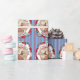 Dieses festliche, maßgeschneiderte Verpackungspapier verfügt über einen Außenrahmen mit einem roten und weißen Pfefferminzkronendesign. Die besondere Phrase "Offizielles Siegel des Nordpols" wird oben gedruckt. Ein individuelle Name wird oben gedruckt, sodass Sie Ihren eigenen Kindernamen oder Empfänger angeben können. "From Santa" wird im unteren Teil mit den Buchstaben im Namen "Santa" in einem Weihnachtsstil-Schriftart gedruckt. Expedited Parcel ist unten auf einem Imitat goldenen Hintergrund gedruckt. Rudolph die Rentierstiefel und rote Nase sind in der Rückseite bedruckt. Der Hintergrund ist hellblau mit roten Streifen.