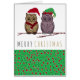 Die Weihnachtsgrußkarte mit Santa Owl und Elf Owl auf einem schneebedeckten Zweig ist ideal, um Freunde und Familie während der Ferienzeit zu schicken.