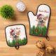 Cook and bake in festive style with this personalized oven mitt and pot holder set featuring an adorable corgi wearing a Santa hat, surrounded by a lush Christmas garland, and the playful “Santa Paws” message. Perfect for holiday cooking, baking, or as a charming gift for dog lovers, this set brings fun and cheer to any kitchen.