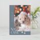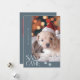 Niedliche und lustige Weihnachtsgeschenk-Vorlagenkarte für Hundebesitzer mit Typografie-Text, in dem "Santa Paws Came" mit einem Foto Ihres Hundes steht. Der Hintergrund ist blau.