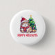 Santa Paws Says Happy Holidays 3 cm Round Badge. A chubby cat lounges beside the glittering Christmas tree, eyes half closed in festive bliss, purring softly as if to say, Happy holidays, may your treats be plenty and naps long.