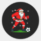 Santa Playing Soccer Xmas Funny Christmas Soccer S Runder Aufkleber