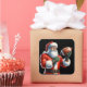 Der Weihnachtsmann steht stolz und trägt seinen ikonischen, roten Anzug und seine weiße Trimm. Er hält einen Fußball in einer Hand, bereit für ein spannendes Spiel.