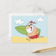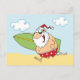 Dieses niedliche Weihnachtsdesign besticht durch den Weihnachtsmann, der ein Surfbrett mitführt und am Strand zum Ozean läuft.