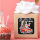 This sticker features Santa Claus driving a classic red convertible car loaded with a decorated Christmas tree and gifts. He is waving from the car, which is set against a solid black background. The text "Ho! Ho! Ho! I'm Coming" is prominently displayed. The design may look real due to the high detail and three-dimensional texture in the artwork.