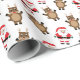 Suchen Sie Weihnachts-Verpackungspapier? Dieses Packpapier enthält einen Santa, der mit seinem Rentier alberne Posen in Rot gekleidet hat.