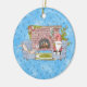 Niedliche Urlaubsszene mit Weihnachten und Osterhase, die sich am Kamin entspannen. Passen Sie die Rückseite mit jedem Namen, Text oder Jahr an.
