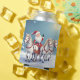 Eine festliche Winterszene mit Santa in seinem Schlitten, von drei weißen Pferden im Schnee unter einem ruhigen Nachthimmel gezogen. Perfekte Darstellung von Urlaubsmagie und Weihnachtsgeist.